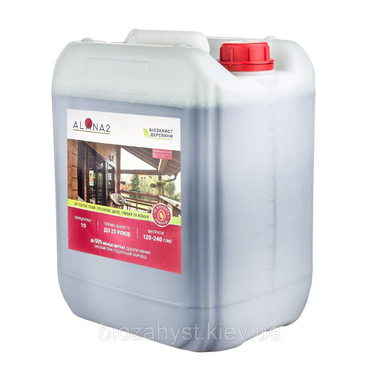 Антисептик Алана-2 1:9 для обробки дерев'яних конструкцій, 10 кг, функція ґрунтування, не замерзає до -7