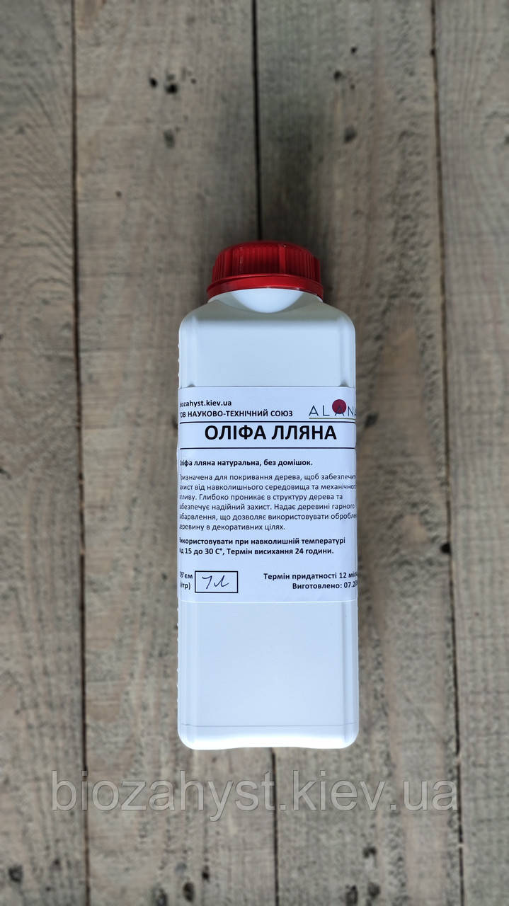 Натуральна Оліфа зі льону, без домішок. Призначена для покривання дерева, щоб забезпечити захист від навколишнього середовища та механічного впливу. Глибоко проникає в структуру дерева та забезпечує надійний захист. Надає деревині гарного забарвлення, що дозволяє використовувати оброблену деревину в декоративних цілях.