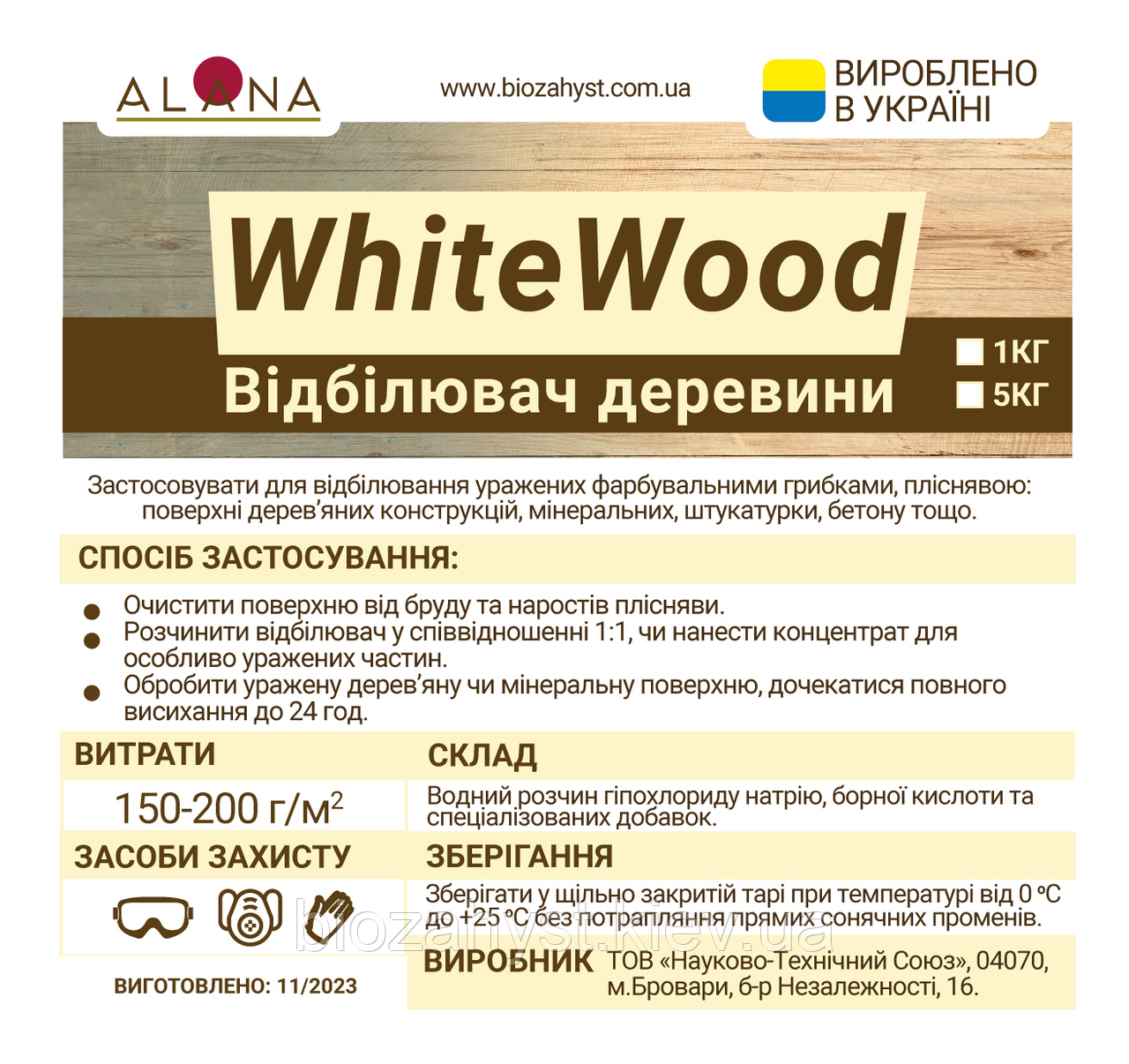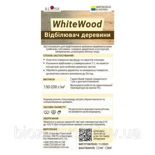 Подробные характеристики Відбілювач для деревини, знищення плісняви та грибка - ALANA White Wood Дезенфектант 1 кг.