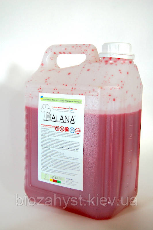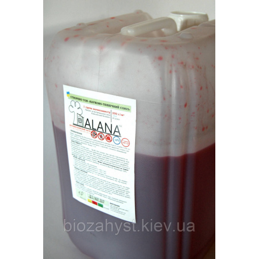 Унікальна запатентована розробка, вогнебіозахист АЛАНА це препарат останнього покоління. Кислотна основа дає можливість глибоко проникати в структуру дерева і створює там активний вогнебіозахисний шар. Оброблена деревина на 60% зменшує поглинання вологи, що дає істотну до 2х разів економію при подальшій обробці дерева лаком або фарбою.